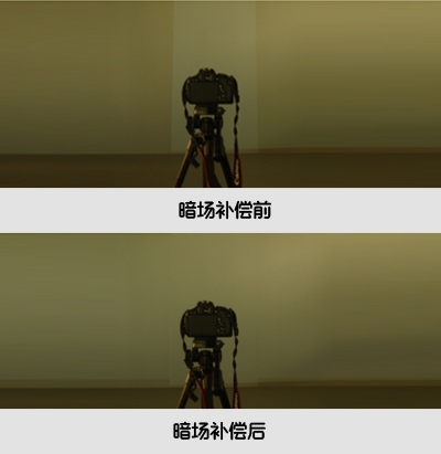 投影機(jī)的漏光,是指投影圖像為全黑色的時(shí)候,投影機(jī)仍舊有一部分光線能投射到投影幕上。這樣兩臺(tái)投影疊加以后,在純黑場的時(shí)候會(huì)出現(xiàn)一個(gè)中間亮帶。融合器需要用提升非疊加部分光強(qiáng)的方式,來抵消亮帶,這一個(gè)過程為暗場補(bǔ)償。